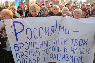 У России было куда больше оснований встать на защиту русско-говорящего населения юго-востока Украины, где весной 2014 года прокатилась массовая волна демонстраций. Жители не приняли киевскую хунту, захватившую власть посредством государственного переворота. Русскоговорящее население страны резко отреагировало и на отмену закона о региональных языках.